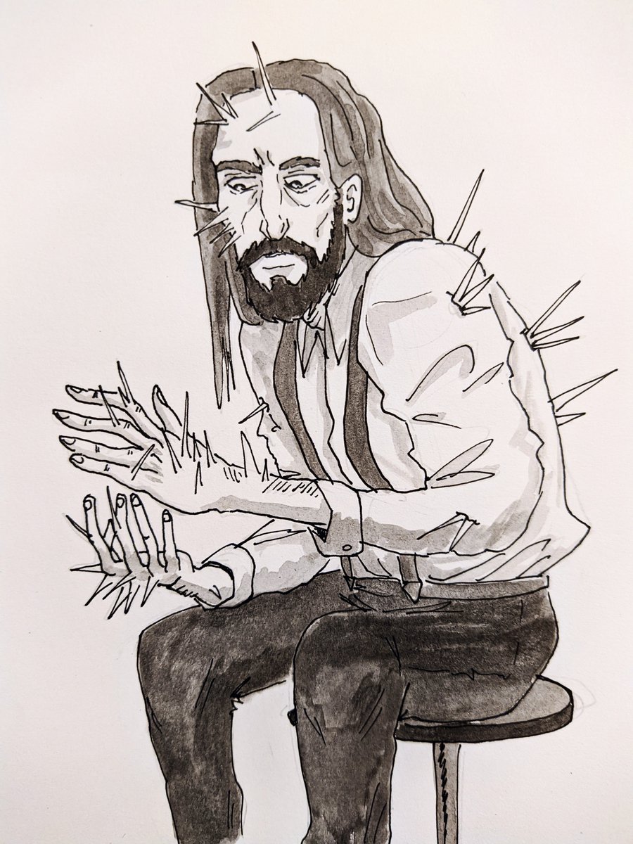 Inktober day 23, another request was to draw everybody's favourite disaster of a human being - the main character from #DiscoElysium. I need to play that game more, it was good for my soul. #inktober #inktober2021 #traditionalart #ink