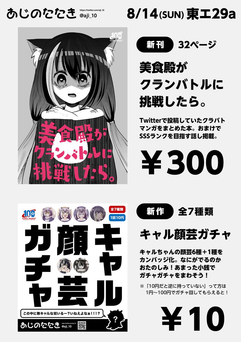 あなたのサークル「あじのたたき」は、コミックマーケット100で「日曜日東地区 "エ " 29a」に配置されました!コミケWebカタログにてスペース配置場所公開中です! webcatalog.circle.ms/Circle/Map/162… #C100WebCatalog