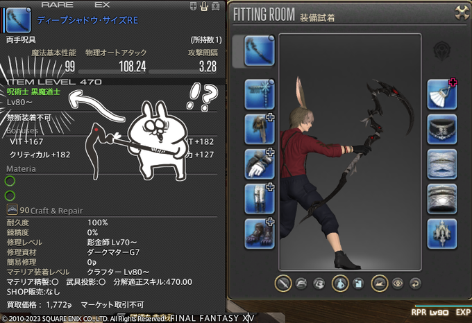 133 572 リテイナーが拾ってきたシンプルで超かっこいい鎌をリーパーでミラプリしようと思ったら黒魔武器だった件 23/07/13 20:11
