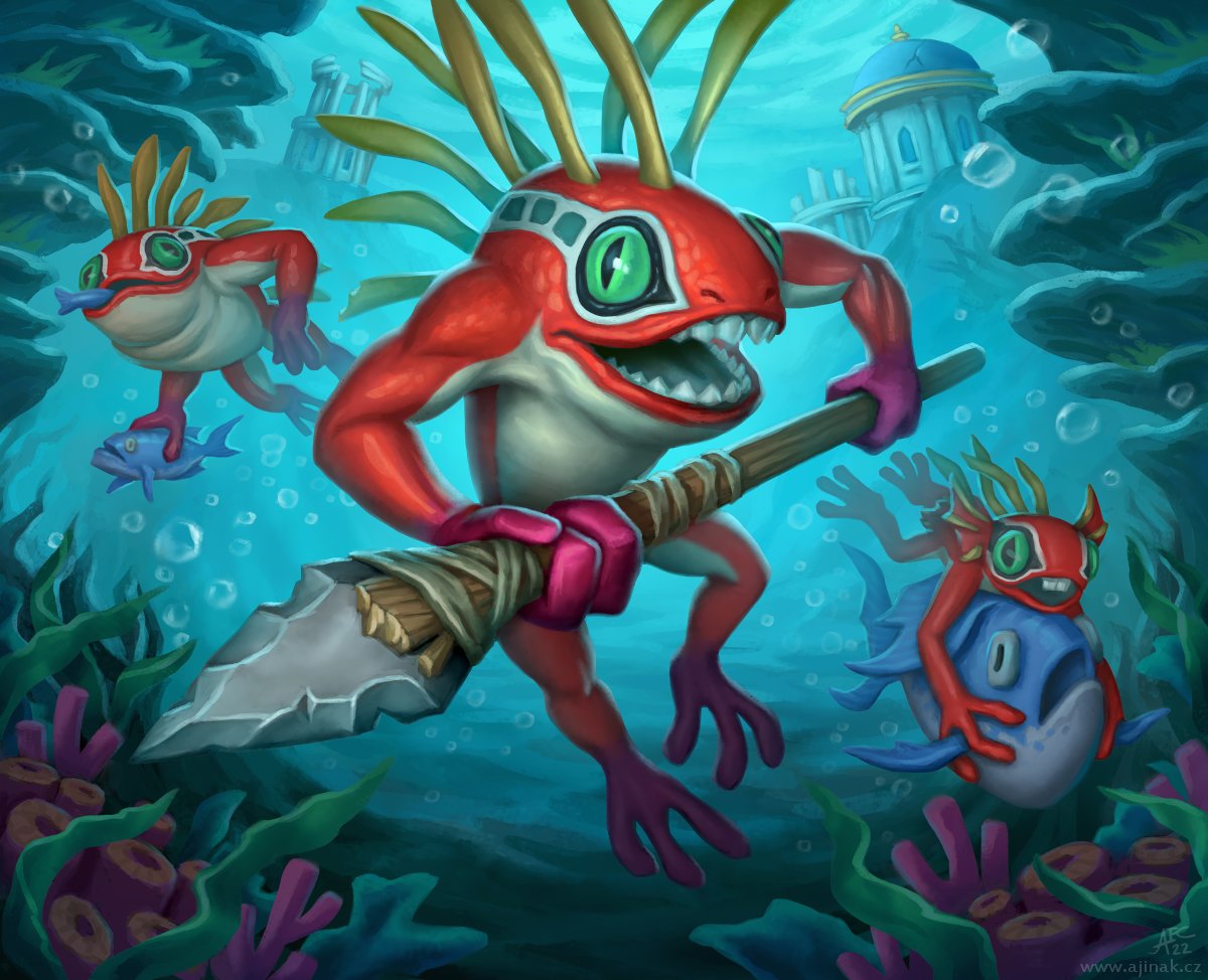 Hunting Party. Done for Anton Zemskov's FanArt Brawl challenge: Sunken City. A few steps from the process at artstation.com/artwork/B3znxl #hearthstone #murloc #fanart