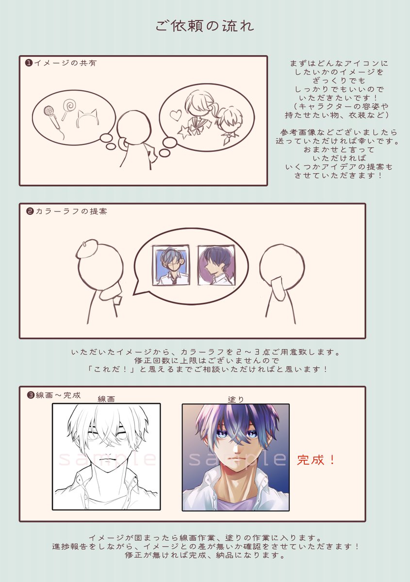 お仕事募集中です!お仕事ください! アイコン以外のサイズのイラストだったり ヘッダーやその他サムネイル、立ち絵などについても お気軽にご相談くださいませ! スキマやココナラにて設定している料金でお受け致します。 二次創作や版権イラストはお受け不可能です。 #イラスト #アイコン依頼