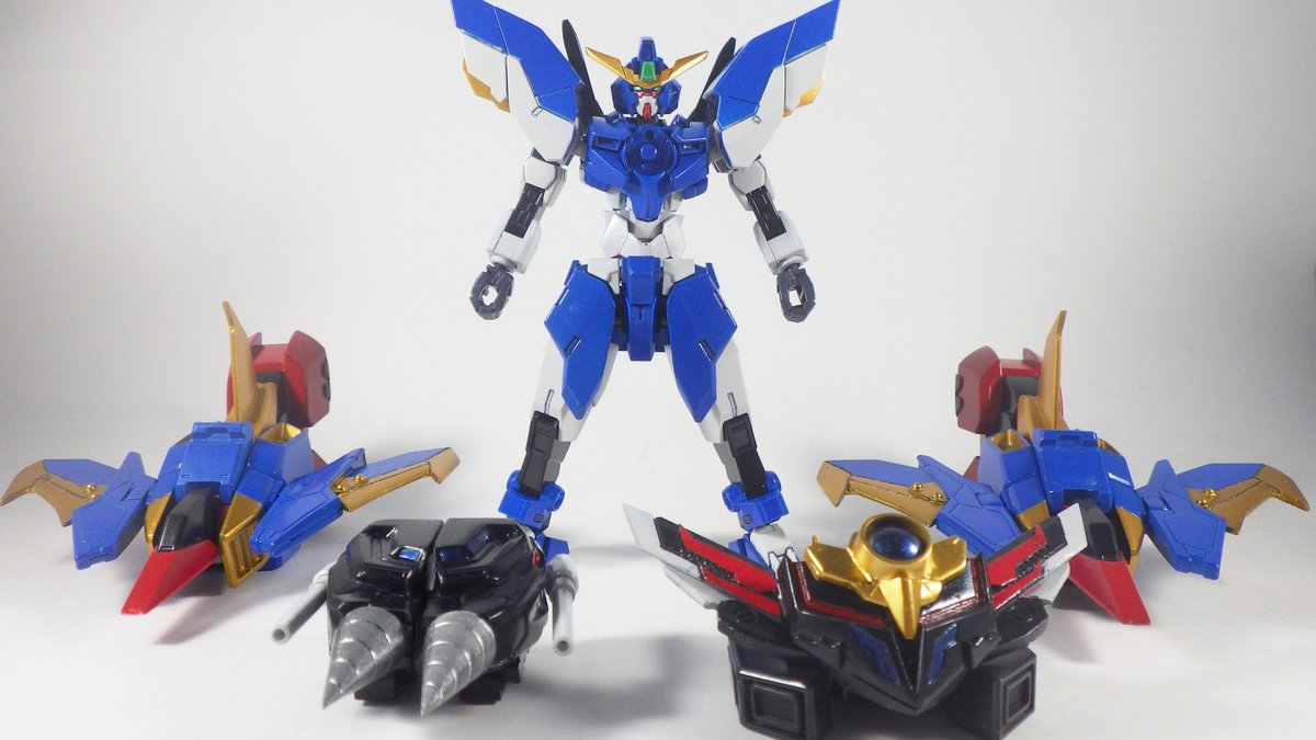 遂に出来ましたああああ(未完成) 月が闇を照らす時伝説が空を舞うコアガンダム2です! 4機の戦闘機グランアーマーと合体する事により真の姿を現すのだ! (未完成)の理由は後述します('ω'`) #ガンプラはどんな自由な発想で作ってもいいんだ #ガンプラ #グラヴィオン