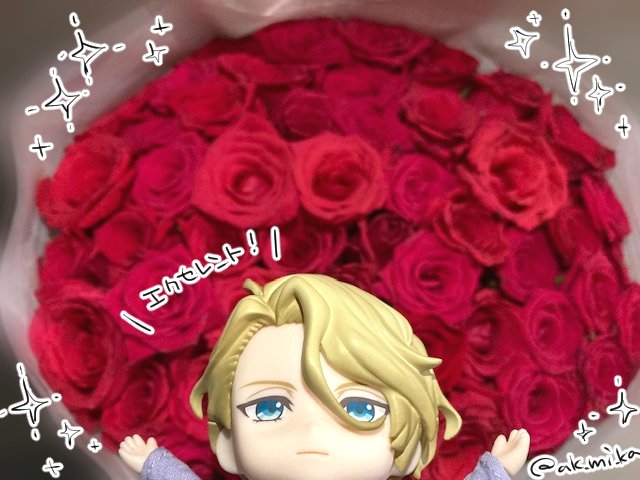【御礼🌹】なんと、#宝石商コミカライズ 5巻発売のお祝いにと、とっても大きくて綺麗で立派なバラの花束を頂きました!💐ええと贈り主は……!? びっくりしました、とても嬉しいです。贈って下さった方、ありがとうございます!!