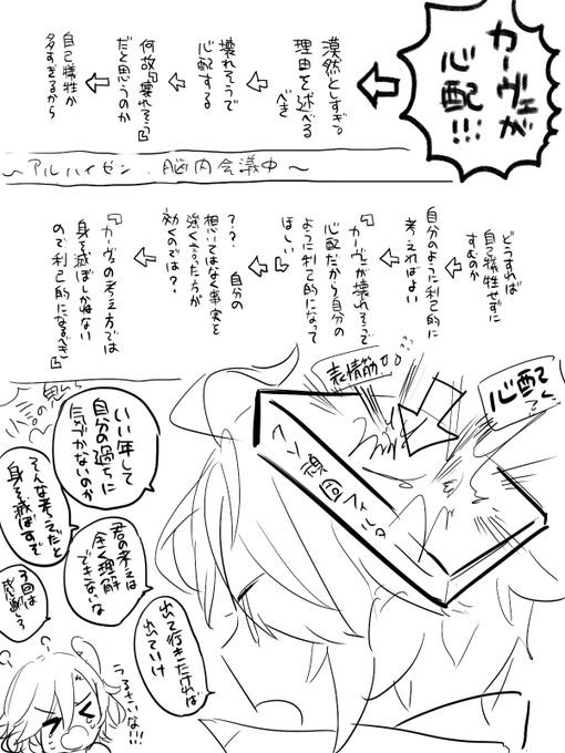 イベントしてみて、やっぱアルハイゼンってこういう感じでカーヴェもだけど人を心配する心は持ってるけどそれをアウトプットする際のフィルターがぶ厚すぎて結局いつも同じ対応になるんじゃないかなって思った