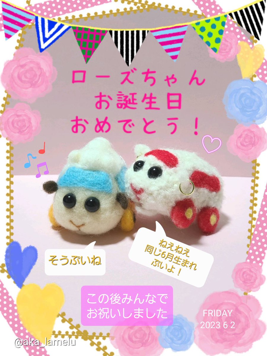 今日はローズちゃんのお誕生日です。 アビーちゃんと同じ6月生まれナノを知ったので嬉しそうに話しかけるローズちゃん🤭 もちろんアビーちゃんお祝いしてくれましたよ🙌💗 #PUIPUIBIRTHDAY #モルカーファンアート