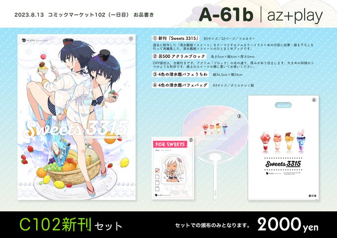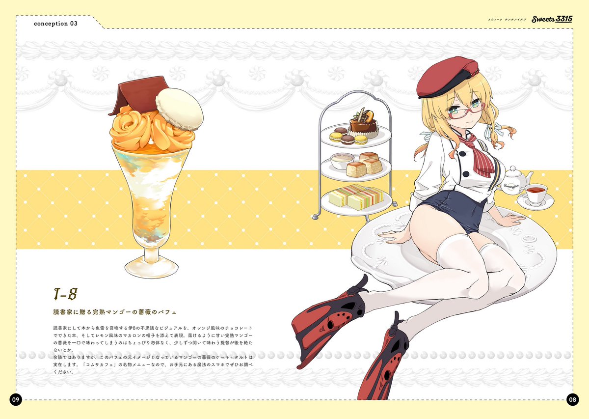 超今更になってしまったんですが、C102の新刊『Sweets 3315(スウィーツ サンサンイチゴ)』のサンプルになります!過去に制作した潜水艦娘×スイーツをテーマとするフルカラーイラスト本の内容に加筆・描き下ろしを行って再編集したひとまとめブックです。melonbooks.co.jp/detail/detail.…