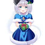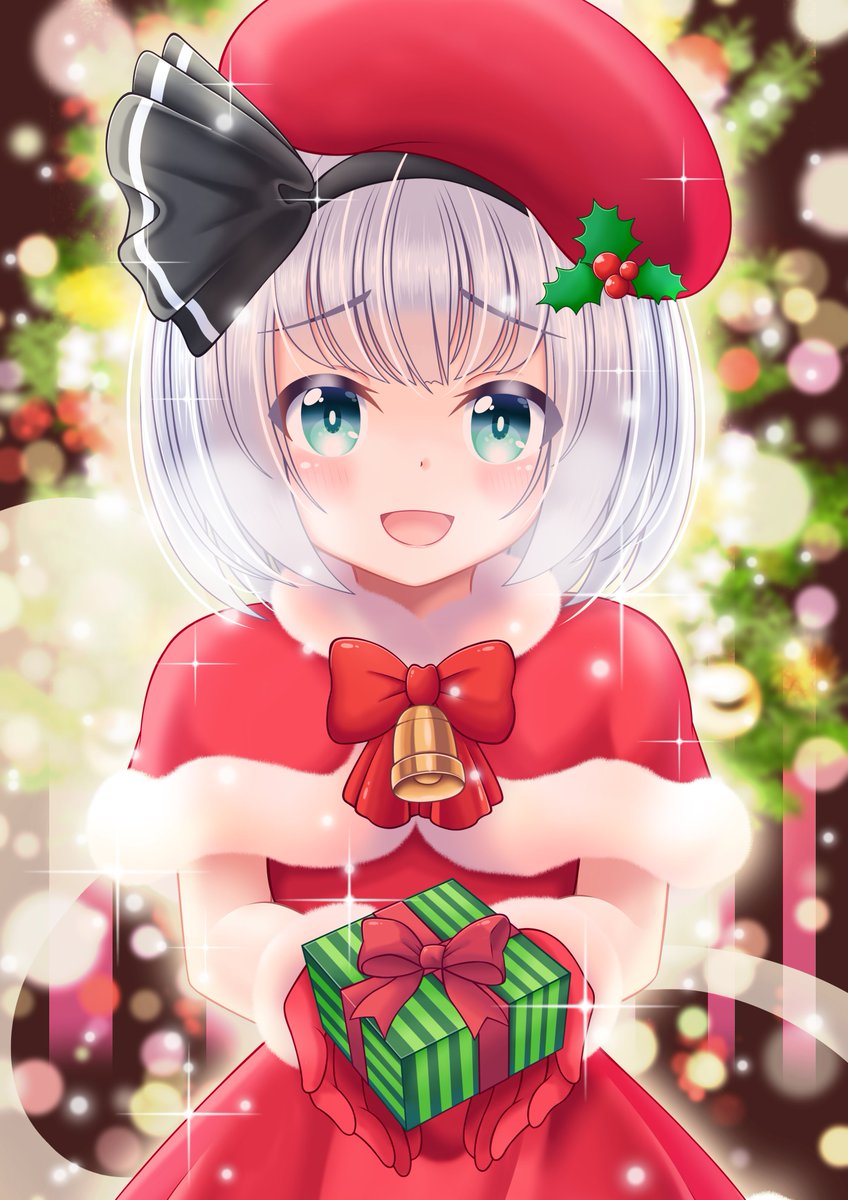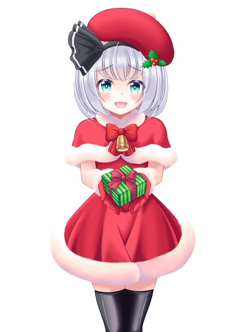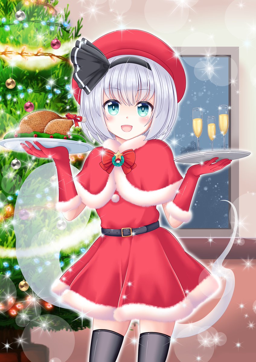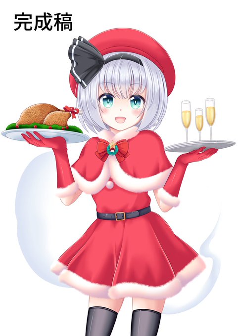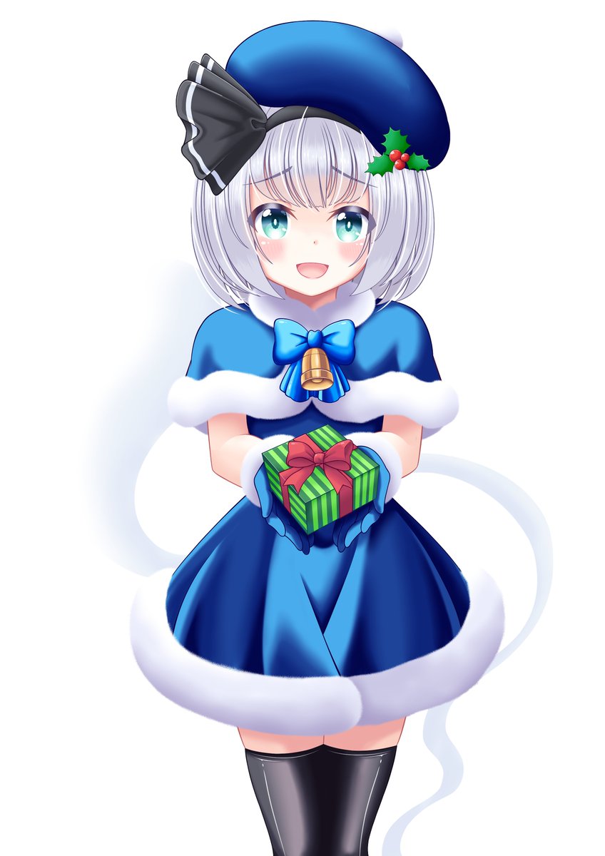 サンタ妖夢 完成稿 #魂魄妖夢 #東方Project #クリスマスイラスト #絵描きさんと繫がりたい これにクリスマスツリーの素材と、簡単な背景にエフェクトでごまかすことによって、素人でも描けるクリスマスイラストの出来上がりです