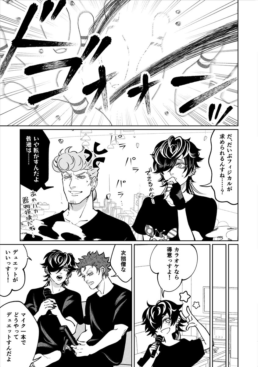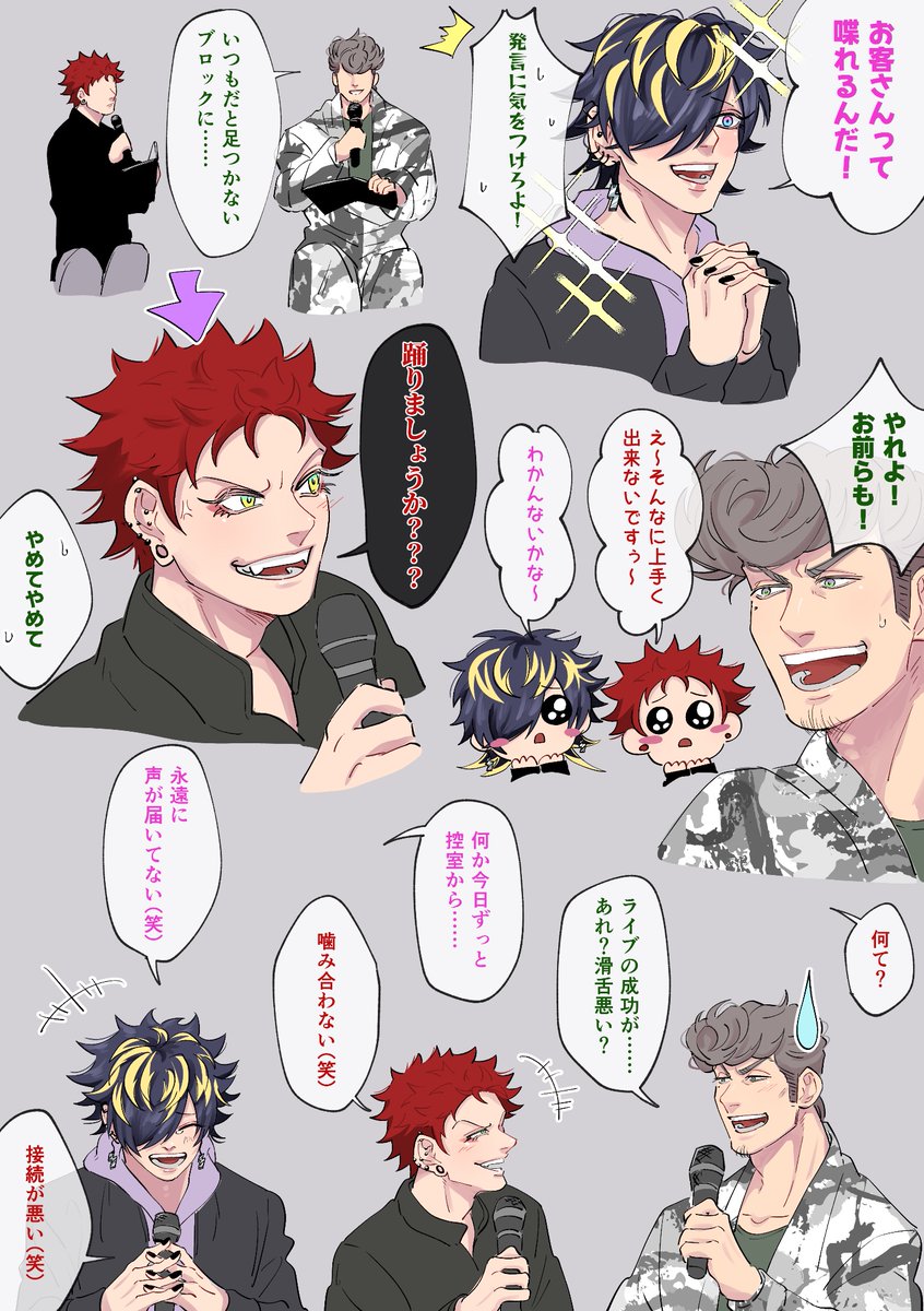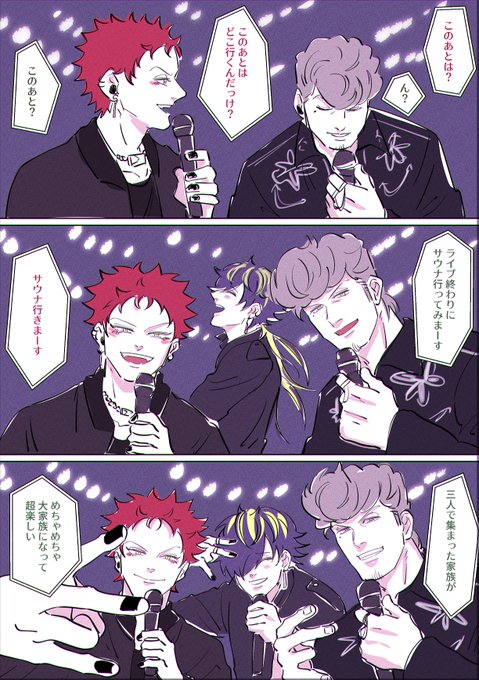 ここ、📿くんが意外と優しく🌔くんの肩に手を回していて師匠……!ってなったしその直後に⚖さんがオラオラ割り込んできてちょっとB型男子〜!ってなったので最高だった 完全に憑依してた