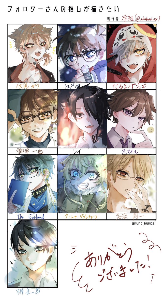#フォロワーさんの推しが描きたい 終わっった〜〜〜‼️絵柄カオス 沢山リプありがとうございました👌好評だったらいつか第二弾やります( ・ ̫・ )