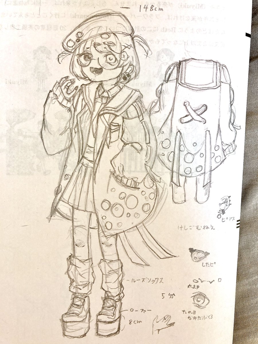 テスト中に考えたキャラデザ 消しゴム忘れたわ(˙◁˙) #落書き #アナログイラスト