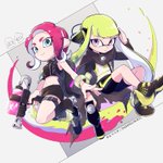 [スプラトゥーン / オクト 3号♀8号♀] 原稿中の落書きを清書 久々にカラーで描いてみたら、線画のペンを変えたのもあってかだいぶ雰囲気が変わった気がする オクト記憶消してもう一回プレイしたい🦑❤️🐙