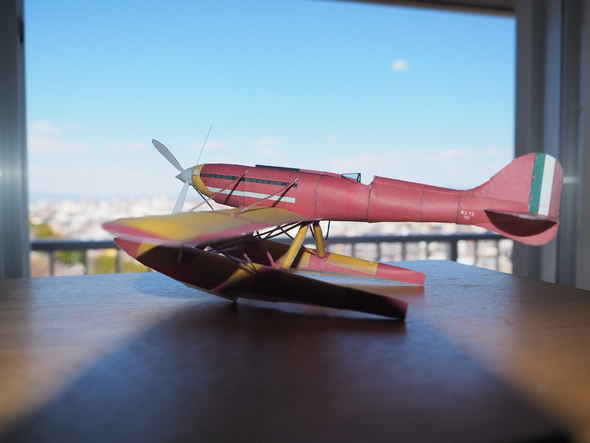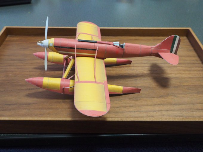 7 28 マッキ M.C.72完成しました! (50%縮小したのでスケール約1/48) 別の水上機も作りたいけど展示スペースどうしよう… #キャノンペーパークラフト #ペーパークラフト 19/04/14 16:44