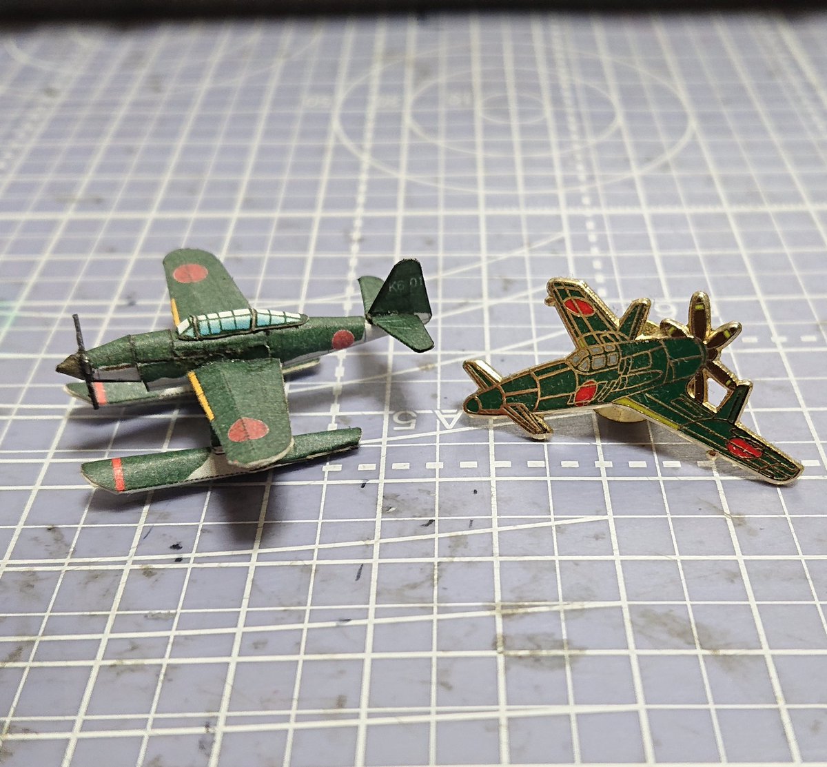 紙模型工房さんの伊400を50%縮小して作ってみたくて晴嵐でテスト。 過去最小の作品で震電のピンバッジといい勝負のサイズ笑 出来るかわからないけど、なんとかなるさの精神でやってみる #ペーパークラフト #紙模型工房 #伊400 #晴嵐