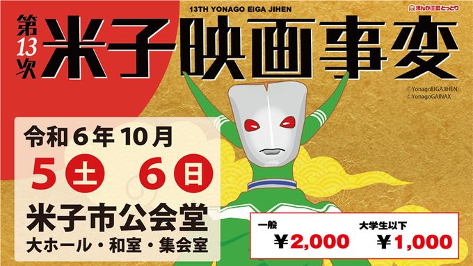 今年の米子映画事変は10月5・6日! 山陰人みんなが観るべき出雲神話アニメ「わんぱく王子の大蛇退治」、岡本喜八監督「ああ爆弾」上映。ゲストにはアニメ演出者・本郷みつるさん(クレヨンしんちゃん等)初登場! 今年は米子市公会堂で僕と握手! yonago-eiga.com