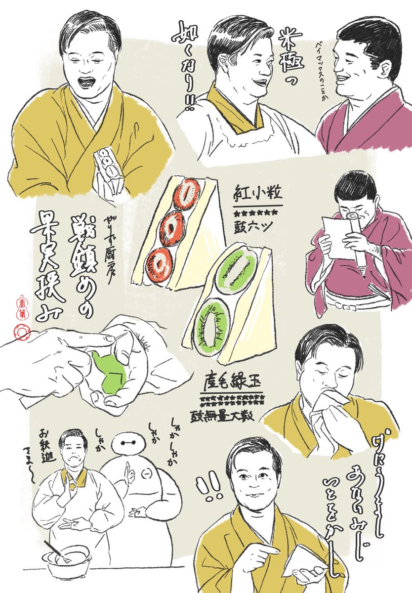 大好きながりず厨房🍓🍓🍓🥝🥝🥝南條さんの包丁捌きお見事でした👏「冷やし仏壇」の和風変換が秀逸すぎて何度でも笑っちゃう。甘くて美味しいものを食べてるとこ、見てるだけで幸せです〜! #すゑ絵 #すゑ様イラスト部 #すゑひろがりず局番