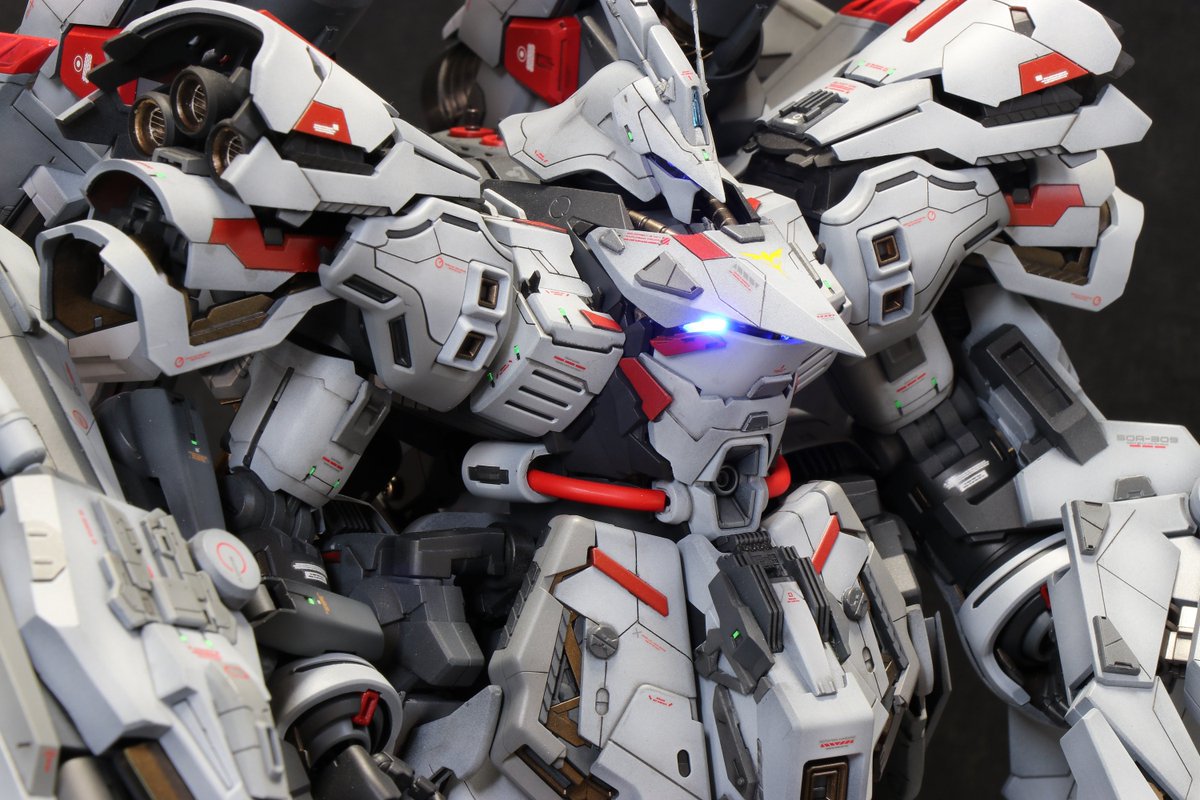 FMガンダムエアリアル完成しました! 今回はミキシングは一切なしでキットの良さを活かしつつ全身にディテールアップを施しました。 自分なりのアピールポイントとしては大き目のツインアイを活かしそこにディテールをいれてみました!(続く #水星の魔女