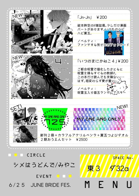 【夏五】6/25くす感お品書きです!当日は東3ダ32aにいます🐈⬛🐈よろしくお願いします〜!!
