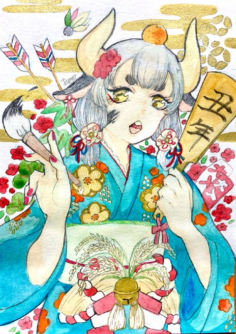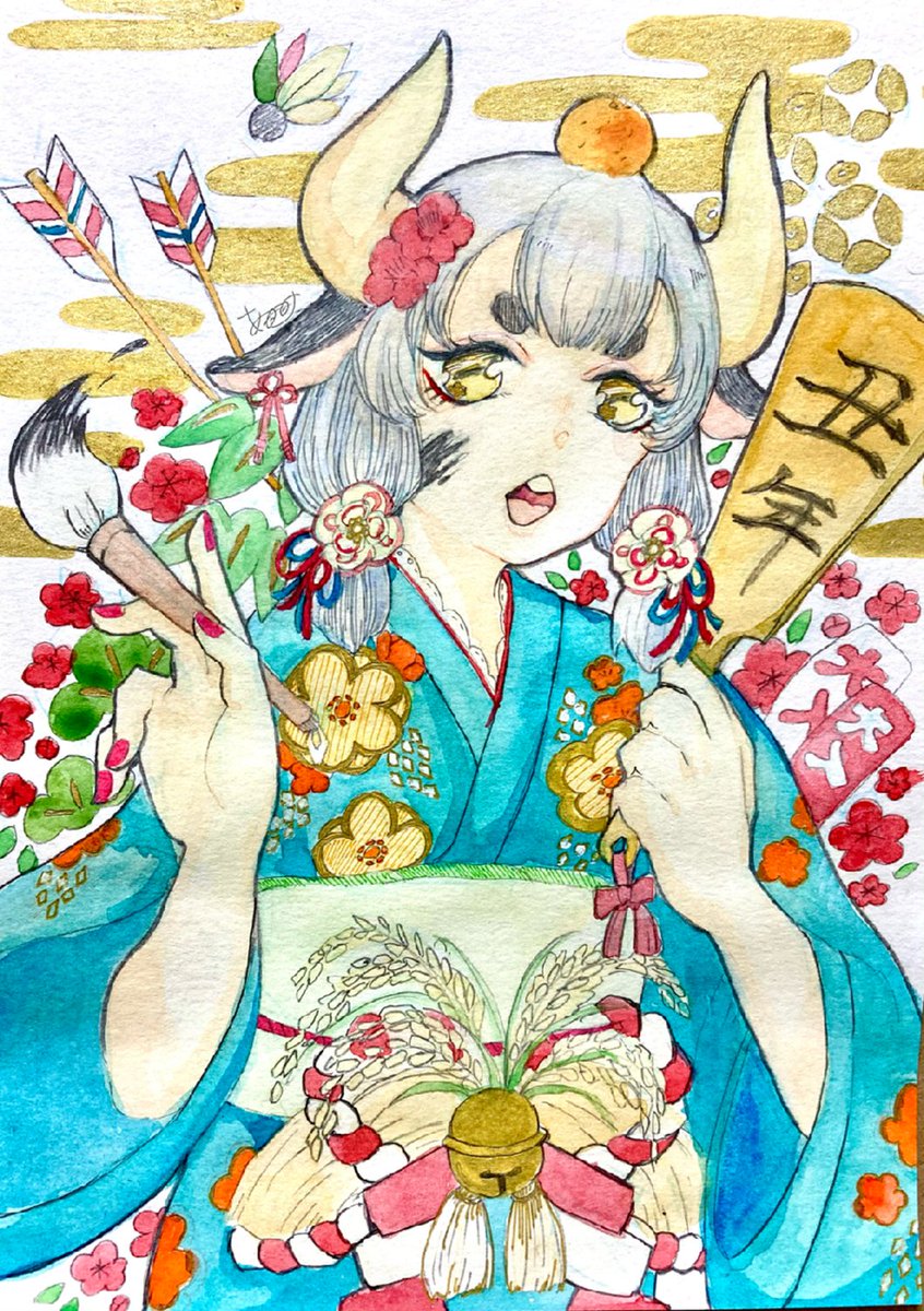 あけましておめでとうございます! 今年もどうぞよろしくお願いします🐮 #謹賀新年 #あけましておめでとう #2021年も笑顔に #illustration #akami_illustration