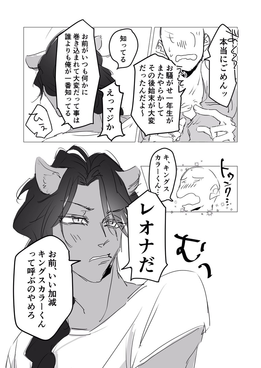 捏造エース兄(先輩)とレオぴ(16歳) エス兄「ヤバいくらい色気のある子入ってきたな~…(えっもしかしてこの子DT?こんなにエッチなオーラだして?!)お兄ちゃん、守ってあげないと…!!」から始まるエス兄レオ 🦁の生意気な所が弟に似ててかわいいなあとついちょっかい出しすぎてキレられる #twst_BL