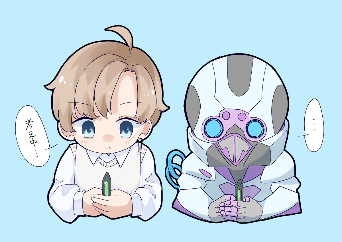 127 698 叶くんがムーブを考えるときとかによく壁際にしゃがんでると思うんですけど、その時のオクタンの手元がナイフを見つめてるようにしか見えなくて可愛かったの絵 #かな絵 21/08/21 03:36