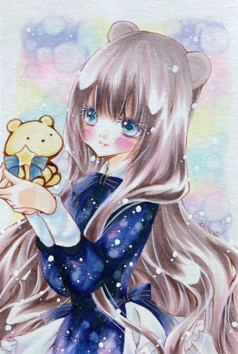 うさ耳ちゃんのくま耳ちゃん🐰🧸 対になるように描いた子達です☺️ #イラスト好きな人と繋がりたい