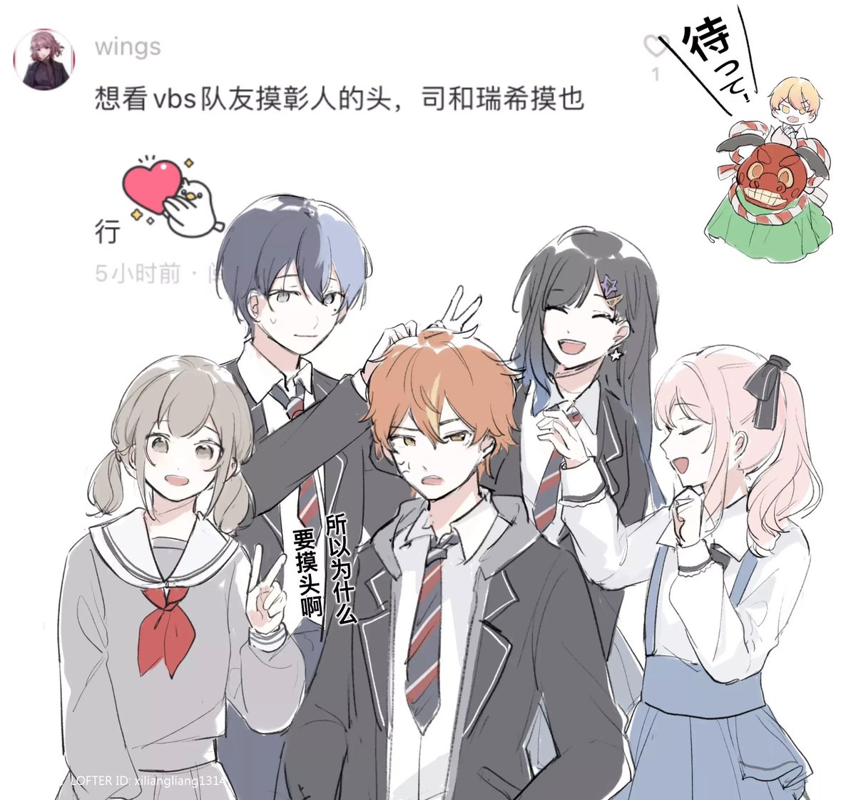 62 169 传画 过程放评论里了 with@STREAMmmmmm 以及没有蓝鸟的饺子和零冬 🎄🎄🎄🎄🎄🎄🎄🎄🎄 #prsk_FA #朝比奈まふゆ #宵崎奏 #暁山瑞希 #東雲絵名 22/12/24 15:09