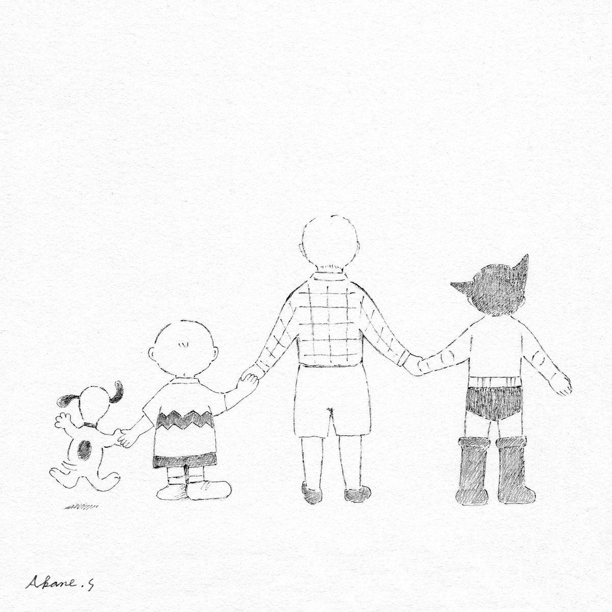 イラスト| なにして遊ぶ? #イラスト #線画 #ペン画 #チャーリーブラウン #スヌーピー #鉄腕アトム #人物イラスト #子供イラスト