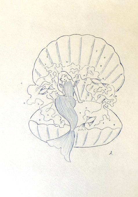 イラスト| 人魚 猛暑日続きます、 皆さまご自愛ください🍧 #イラスト #線画 #ペン画