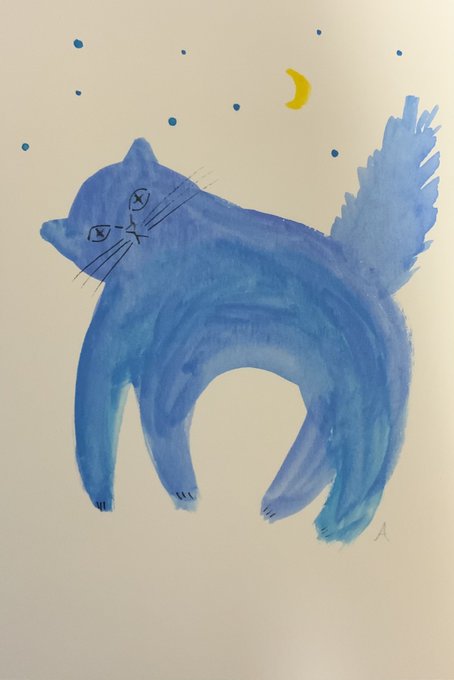 0 9 イラスト | 夜にしか会えないネコ 絵の具をびょ〜と紙にひきたくなりました。 #illustration #イラスト #ネコイラスト 22/10/13 16:38