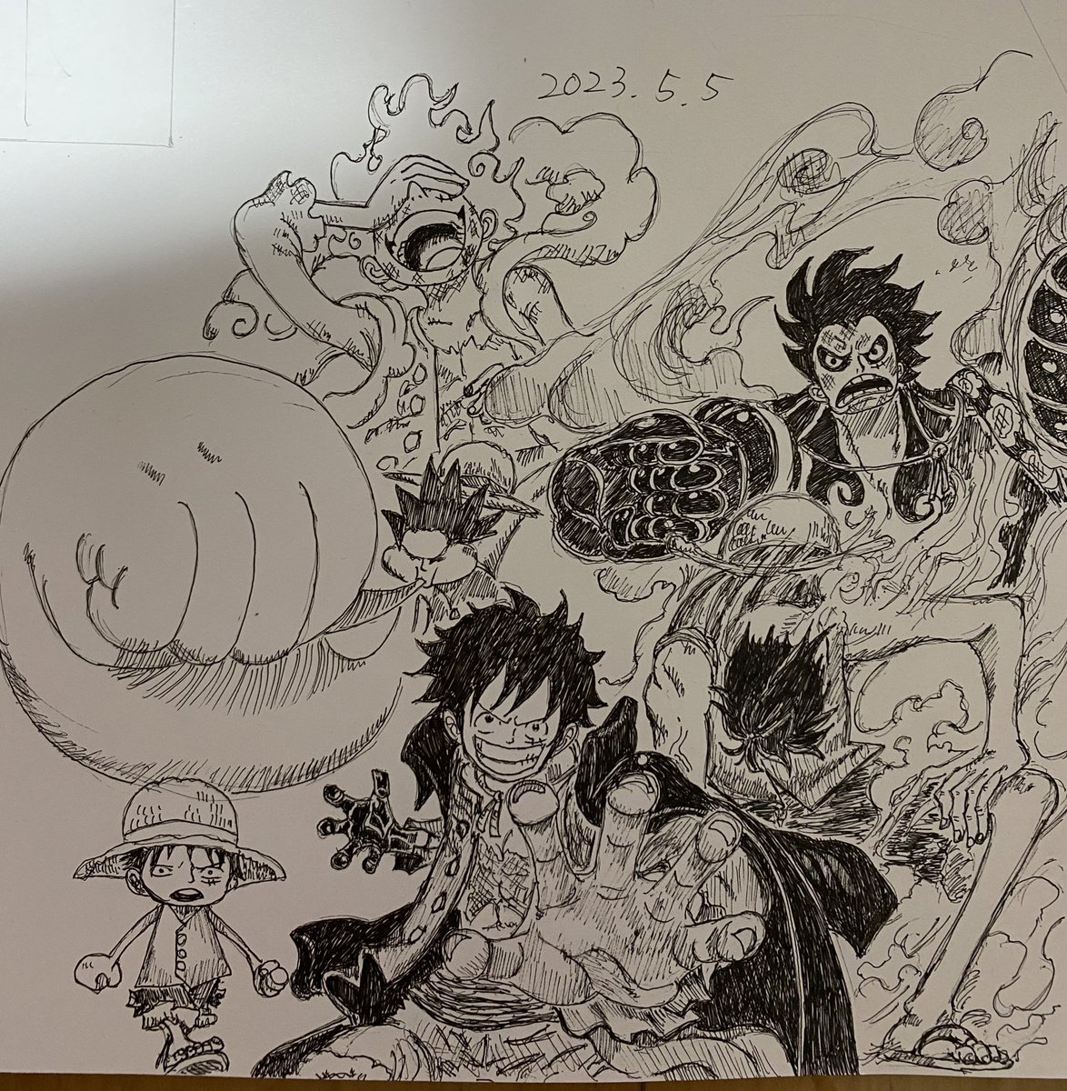 12 114 ルフィ、デマロ・ブラック おめでとう🟥🐱 #ルフィ誕生祭2023 #デマロ・ブラック #模写 #誕生日キャラ1年間模写チャレンジ 23/05/05 02:36