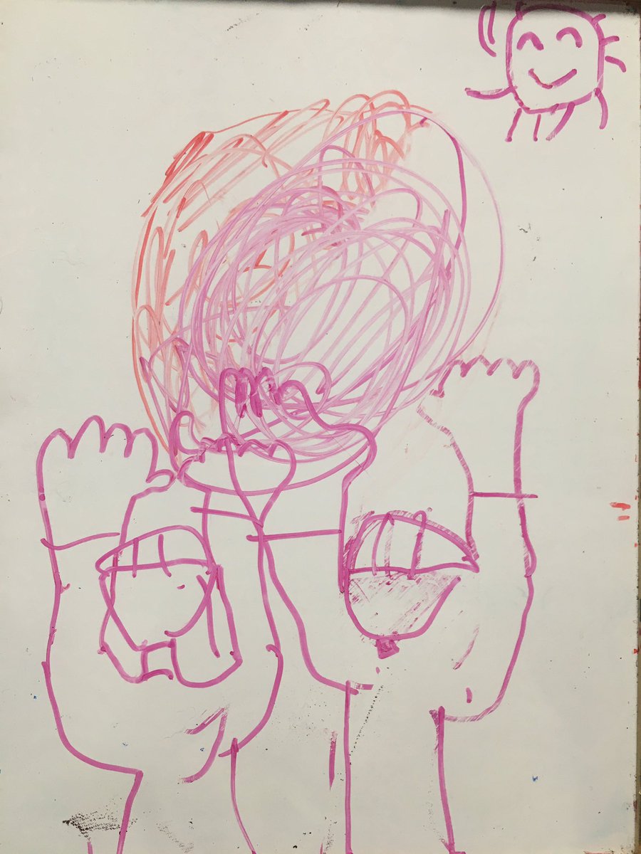 娘が運動会の絵を描きました😊✨ …お兄ちゃんの絵日記を見て描いた大玉送りの絵…。 運動会も予行練習も、2学年ずつやったので歳が離れた娘は、お兄ちゃんの演目を見れませんでした💧 世知辛い世の中ですわ😭 #落書きギルド #みんなで楽しむTwitter展覧会 #運動会