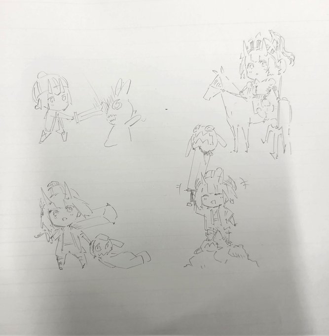 周りに乗って 休憩時間に少し描いてみた🦆🦌