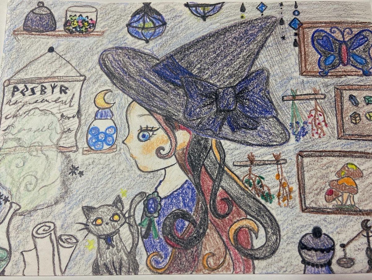 見習い魔女のお部屋🐈⬛ #イラスト #ファンタジー #魔女