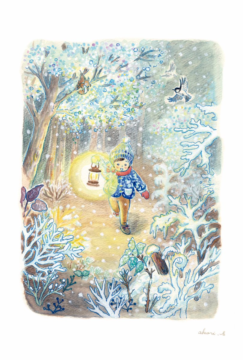 「ランタンを持って」 #雪景色 #水彩画 #アナログ画