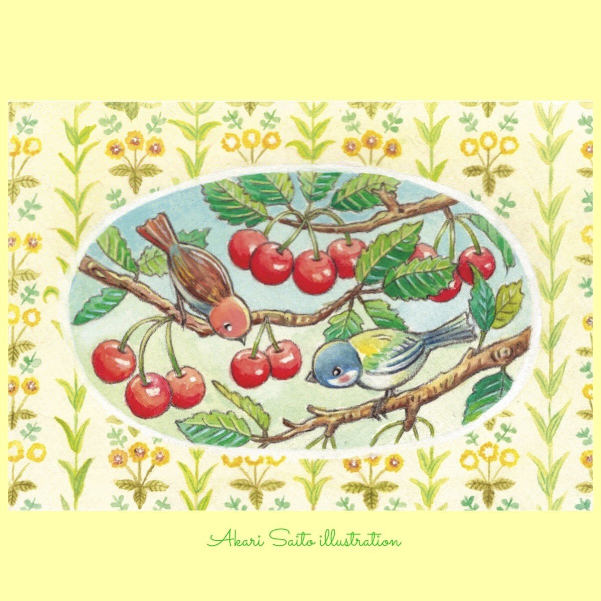 0 8 小鳥とさくらんぼ #水彩 #小鳥 22/05/09 13:00