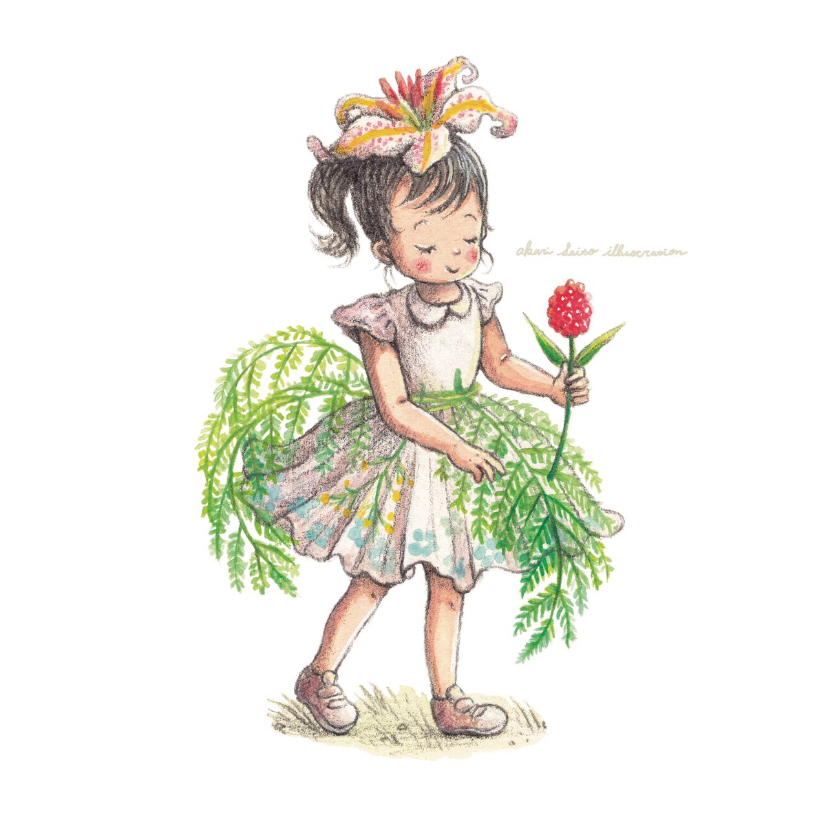 花や葉でおめかし🌿 #水彩 #女の子イラスト #こどもイラスト