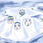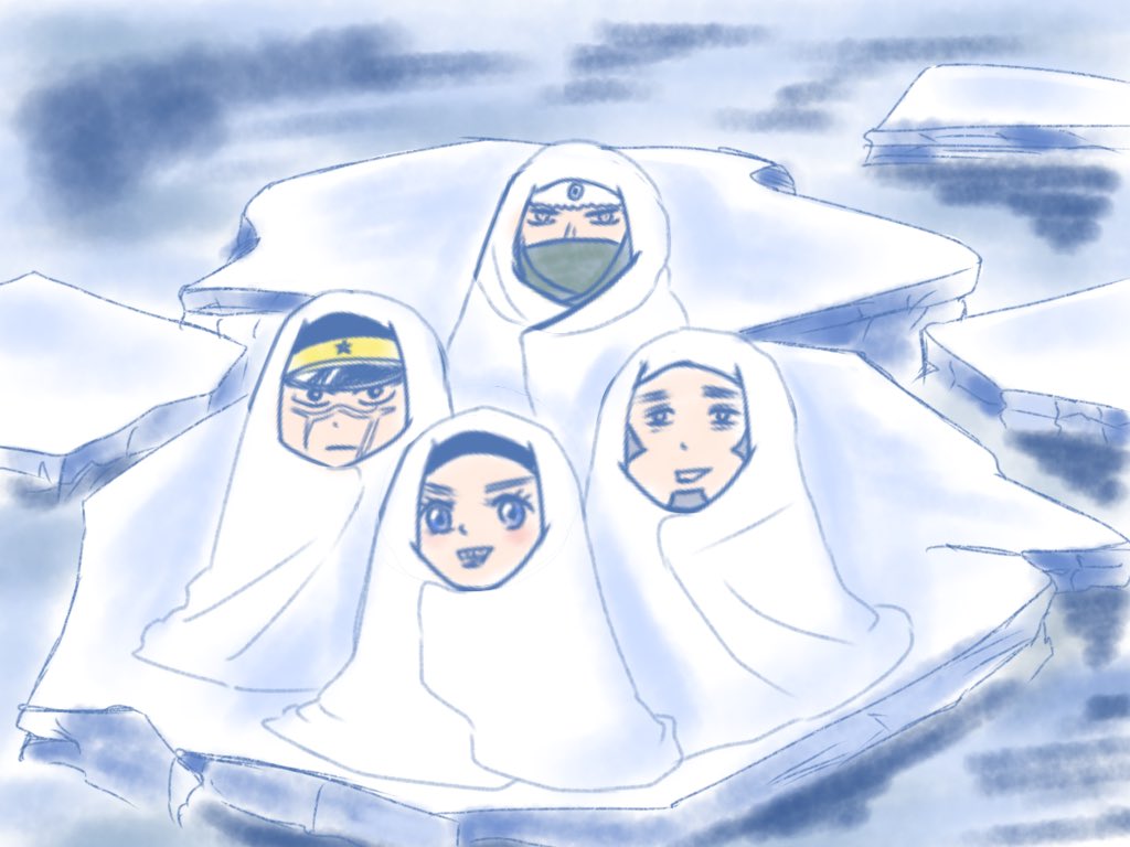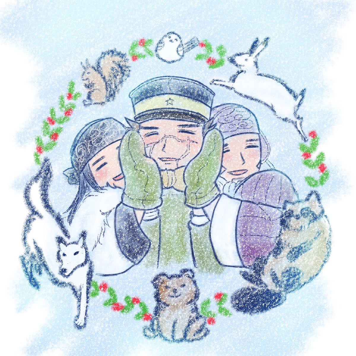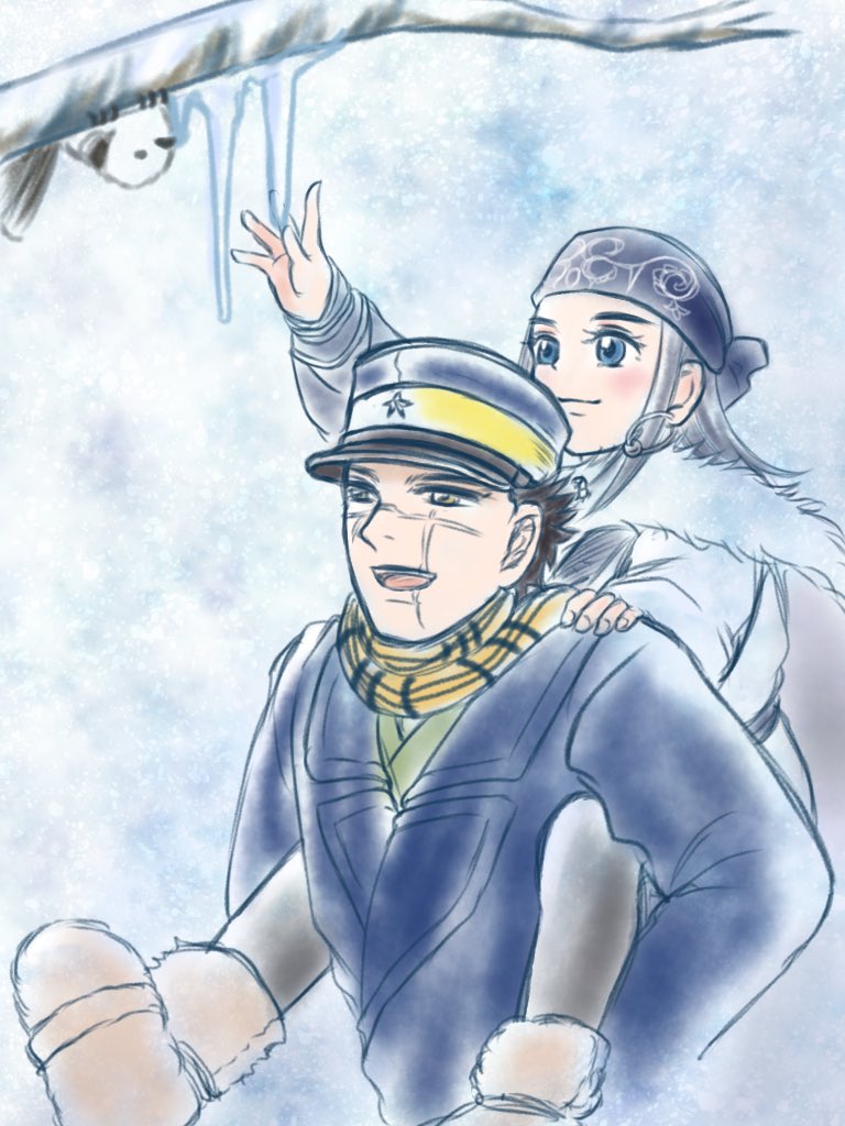 #ゴールデンカムイ版深夜の真剣お絵描き60分一本勝負 【お題】冬の装い、冬の準備 もふもふもふもふ 杉元が樺太で使ってたミトンはお手手がふたつ入りそうな大きさだったので白石とリパさんに手を突っ込まれてて欲しい