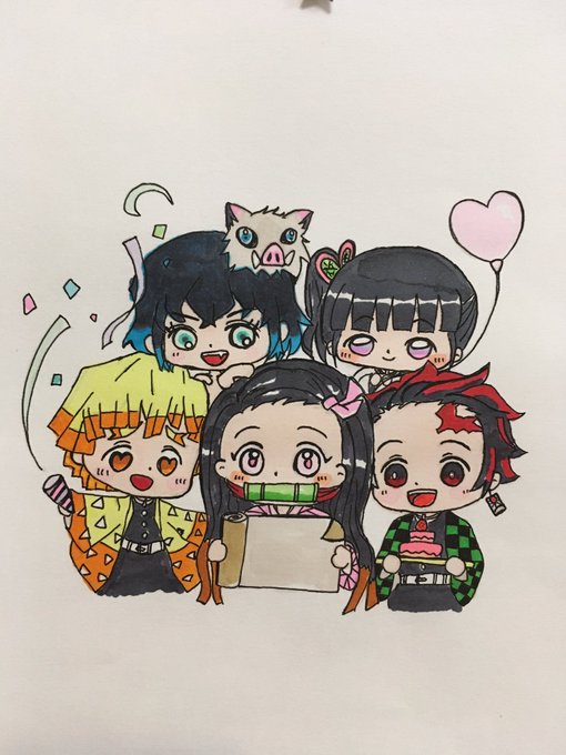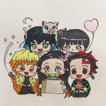 #あなたのkmt推しキャラベスト5を教えて タグお借りしますー💖 ①甘露寺蜜璃 ②竈門禰󠄀豆子 ③栗花落カナヲ ④胡蝶しのぶ ⑤竈門炭治郎 義勇さんもむいくんも伊黒さんも好きだけど、今回は『グッズを買うなら誰かな…』というのを含めて考えました🤗💕可愛い女の子は癒し💖笑 #鬼滅の刃イラスト