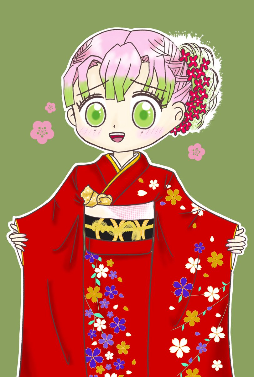 新成人の皆様おめでとうございます🇯🇵 #推しに振袖を着せよう という素敵なタグを見つけたので、お借りします♡♡ 2021年初お絵かき🤗 私が○○年前に着た振袖👘上手く描けないけど、こんな雰囲気でした✨ #成人の日おめでとう #鬼滅の刃イラスト #甘露寺蜜璃