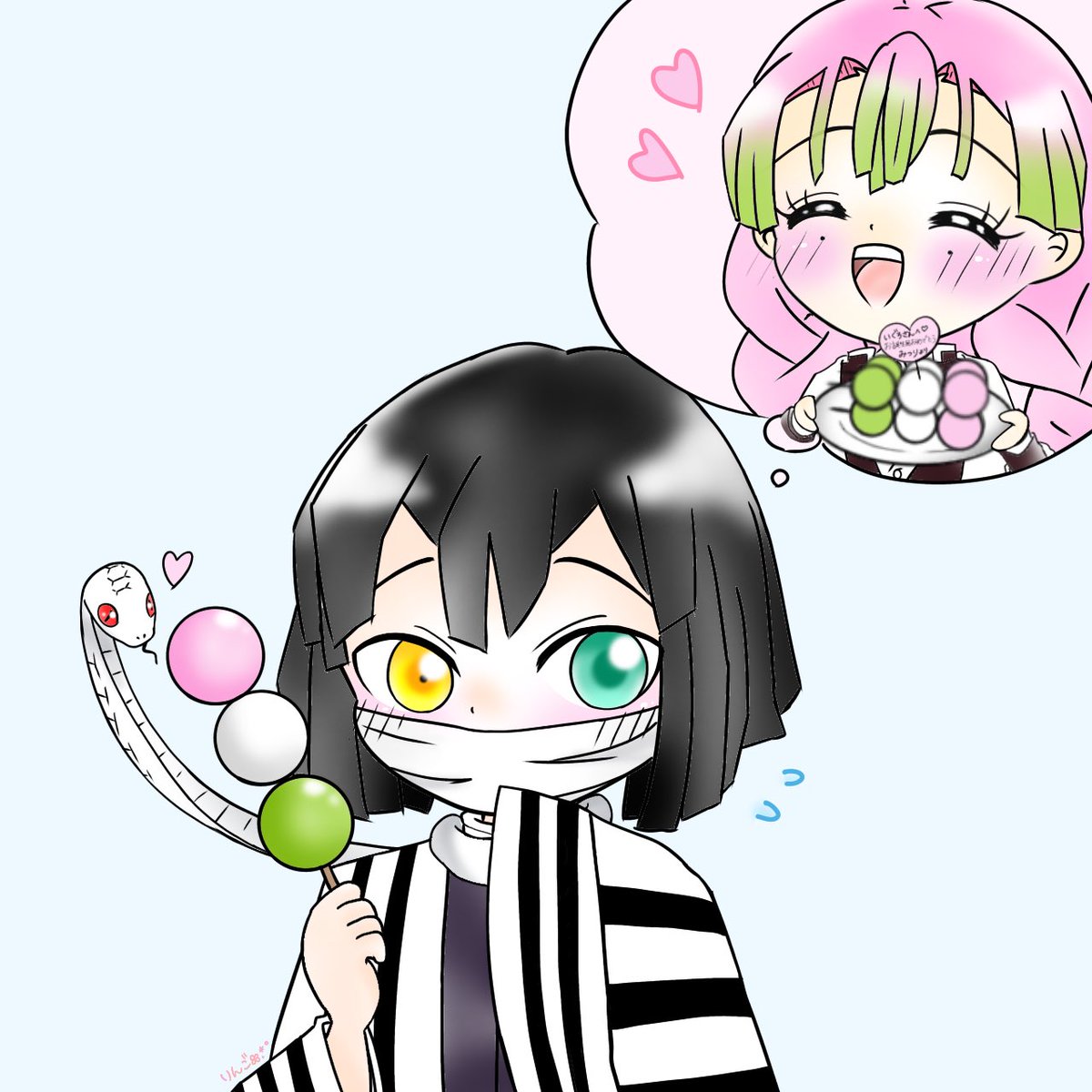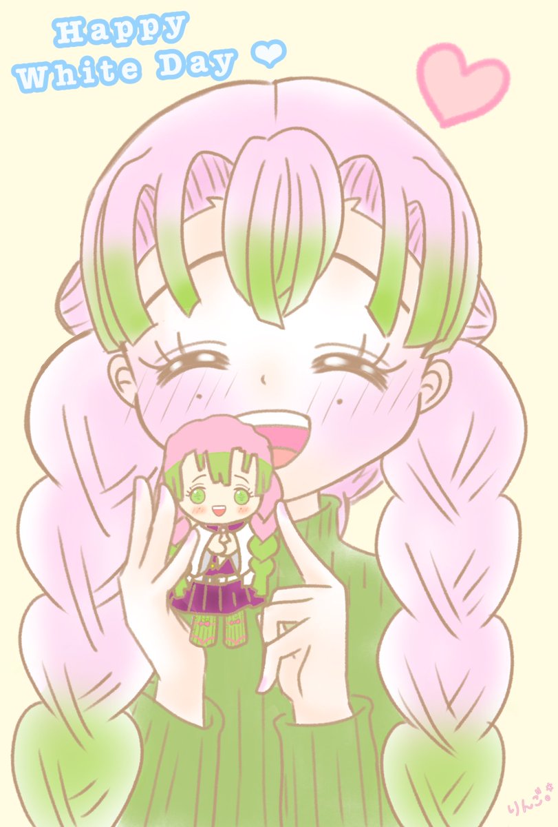 バレンタインデーに無事チョコレートを渡せた蜜璃ちゃん💖 今度は伊黒さんからホワイトデーのプレゼントが…💝✨ Happy White Day💙 #ホワイトデー2021 #鬼滅の刃イラスト #甘露寺蜜璃 ※ぽふっとぬいぐるみの絵、自分が持ってる蜜璃ちゃんを見て描いたの!今回一番頑張ったところ!!!笑 twitter.com/shuringo72/s…