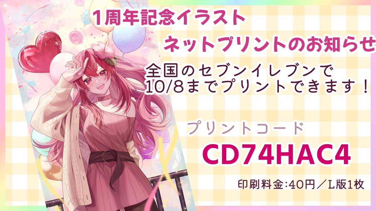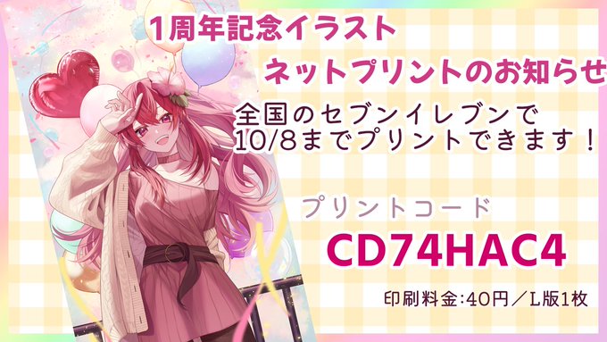 🌺おしらせ🌺 1周年記念イラスト、ネットプリントのお知らせ! Live2dデビュー1周年記念のイラストがネットプリントになりました!! はちゃめちゃかわいい赤坂を是非にお迎えしてね💖 プリントコード:CD74HAC4 期間:2022/10/8まで イラスト:しな様( @snmn47 ) #ネットプリント