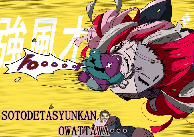 みこちに続き、ふぶちゃんも強風の餌食に...... 五周年おめでとう!!!! #絵フブキ