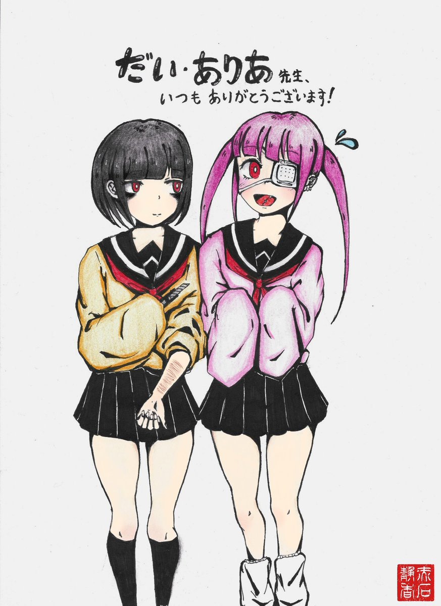 だい·ありあ(@rascal_0808)さんちの亜帆ちゃんと莉朱香ちゃん描きました ! リスカを亜帆ちゃんに誘さそう莉朱香ちゃん !そのエピソードが思い出して 描いてみました⌯'▾'⌯ いつも応援してます🌈 クリマお疲れさまでした✨