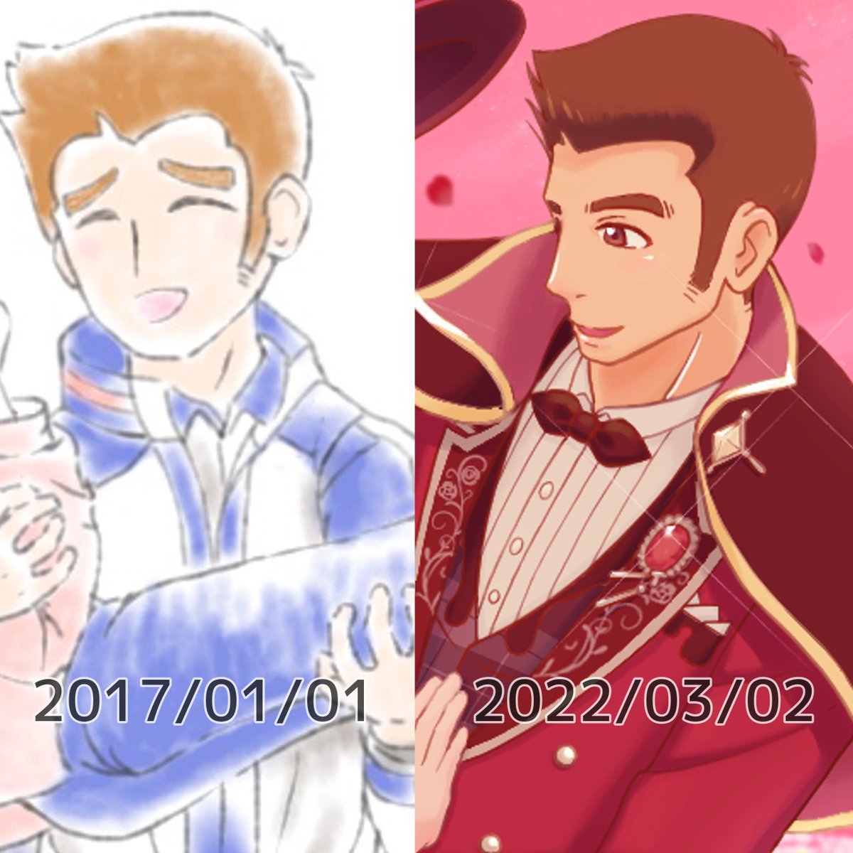 タカさんの普通の頭身とデフォルメ #推しの初描きと現在の絵を載せる