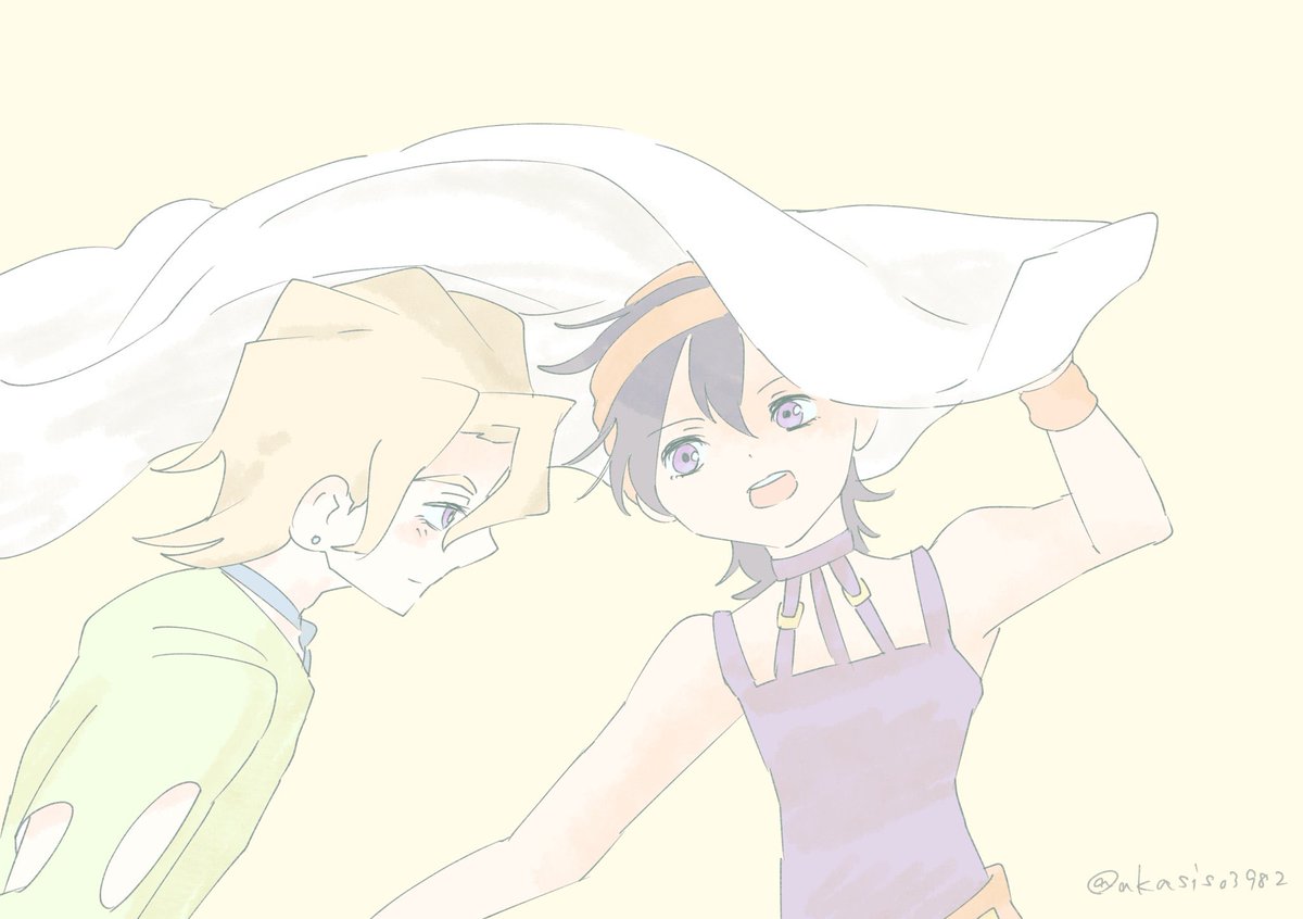 凪原さん(@nagihararion ) のスカーレット旅パ描かせていただきました🙌記念写真風です