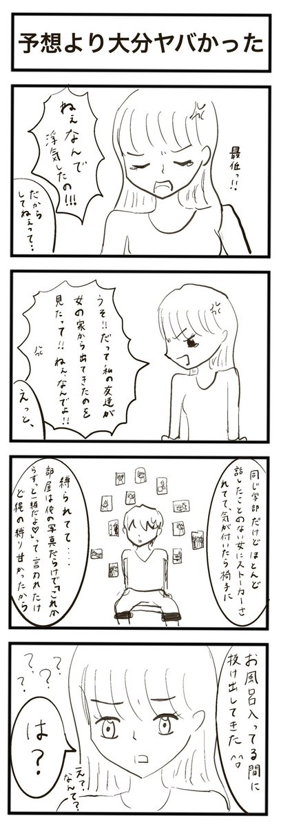 「予想より大分ヤバかった」 #四コマ漫画 #漫画 #イラスト #漫画が読めるハッシュタグ #日常 #漫画好きと繋がりたい #イラスト好きな人と繋がりたい #恋人 #浮気 #イラスト初心者 #sai