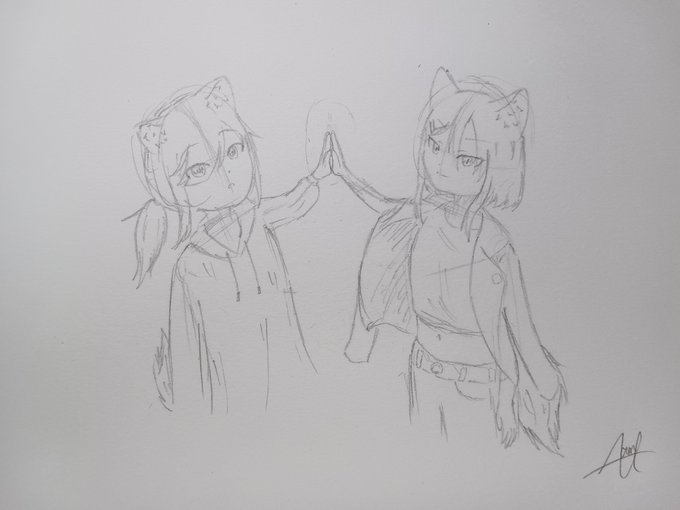 がっこで考えてたオリキャラちゃん2人(狼の子で左白髪、右黒髪の対になるように考えてる)新しい子にしたい!! あと、私事ですが明日から1週間テストなので絵があまり描けなくなります… #イラスト #オリジナルイラスト #オリキャラ