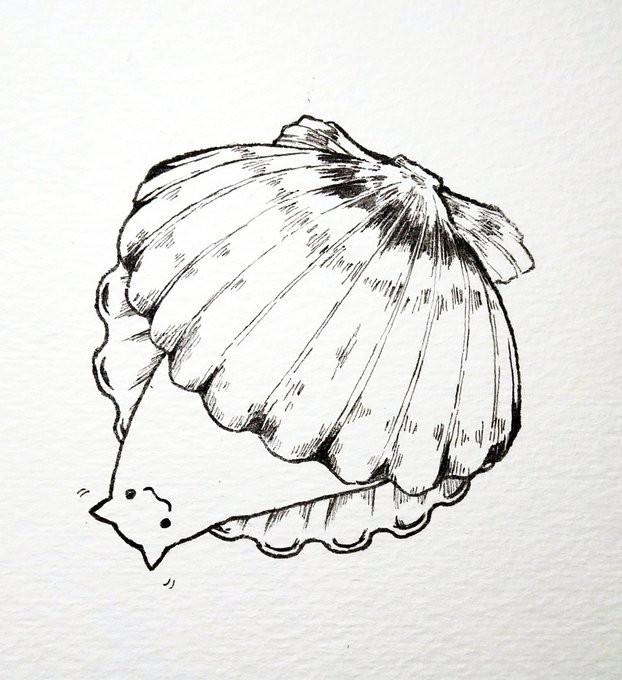 1 8 4.scallop/ホタテ貝 #inktober #inktober2022 にゅるん 22/10/04 23:21