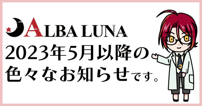 #albalunaworks ALBA LUNAよりお知らせ 2023年5月以降の色々な予定についてお知らせです。 ・小説本制作「らくらく」受付休止 ・サーバー移転 ・小説本テンプレ整備 ・匿名メッセージ閉鎖 ・Skeb再開 albalunaweb.net/oshirase/20230…