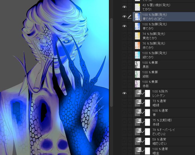 🦎男配色まだあったw 色々迷った上で決定稿(左上タイトル入り)になる過程です レントゲン版で冒険しても良かったかな #ピッコマ 76話待てば0円 piccoma.com/web/product/51… #Kindle 4巻無料✨ amazon.co.jp/dp/B08T8V2MTB?… #漫画 #コミック #イラスト #illustration #CLIPSTUDIOPAINT #コミックシーモア